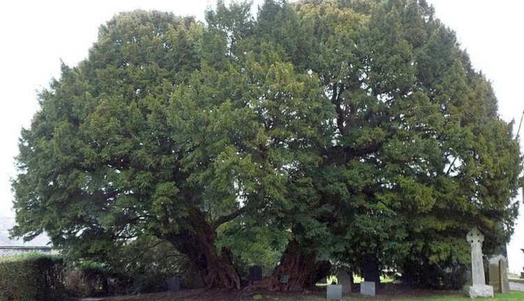 El tejo (Taxus baccata) de Llangernyw es un árbol con más de 4.000 años de antigüedad, plantado en algún momento de la Edad de Bronce prehistórica, ¡y todavía sigue creciendo! Situado en el cementerio de Llangernyw, Conwy, en el norte de Gales, está fragmentado y su parte central se ha perdido, aunque quedan varias ramas enormes. La circunferencia del árbol a nivel del suelo es de 10,75 metros.